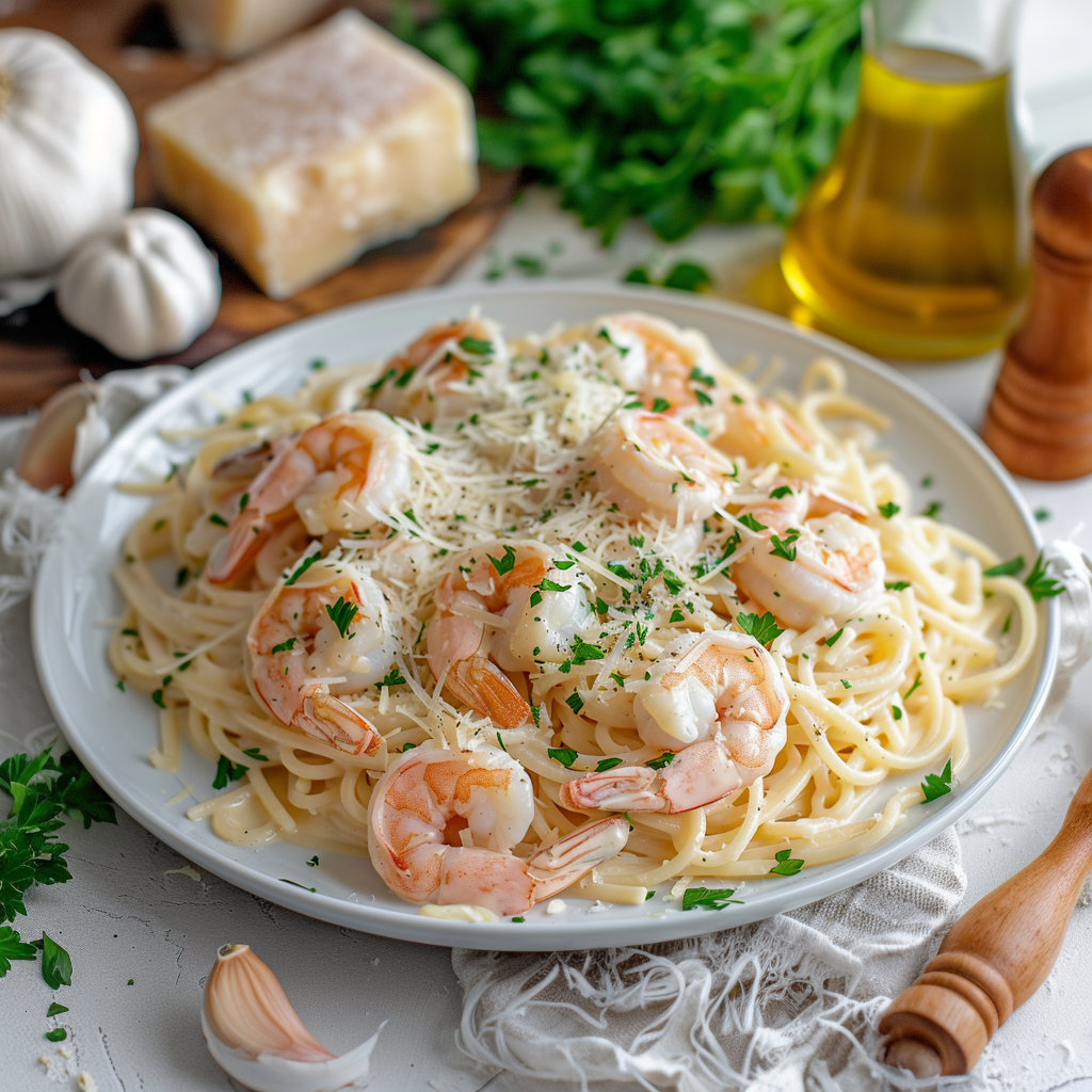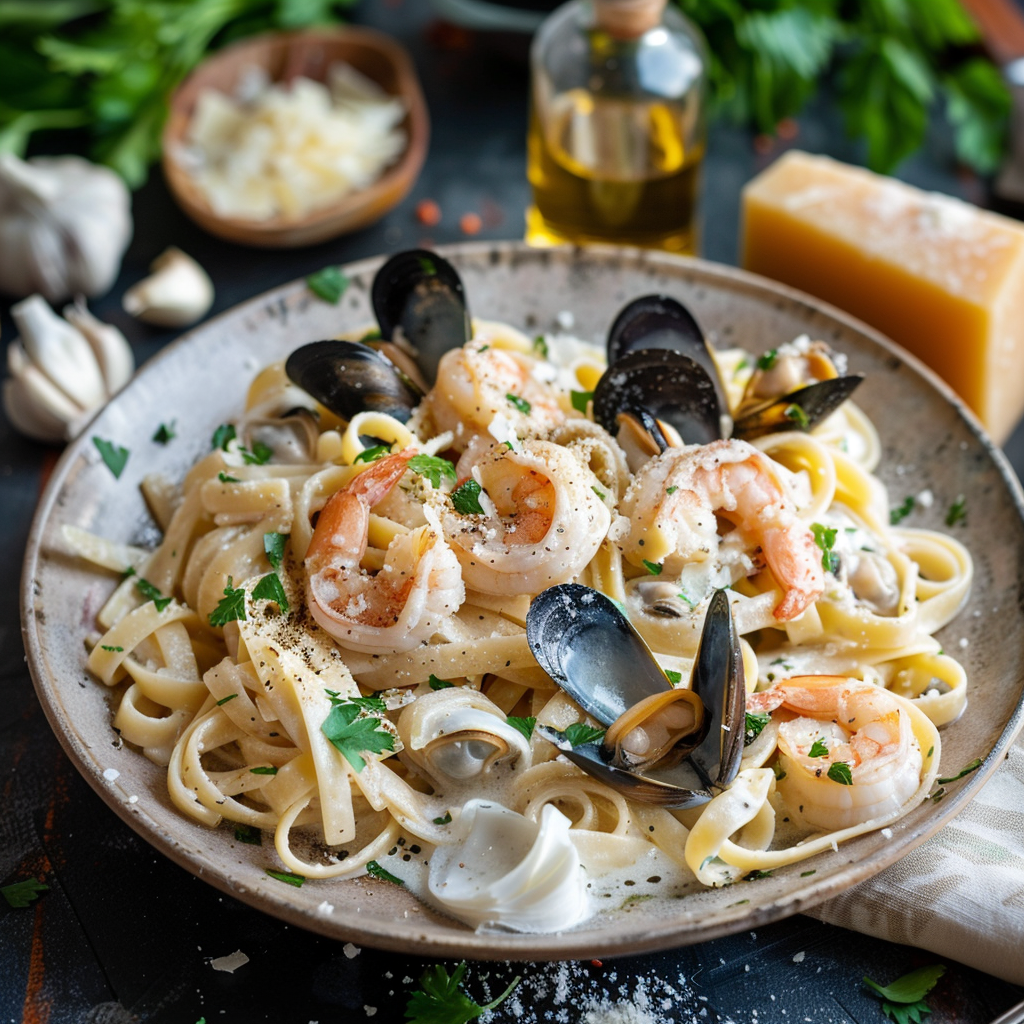 Фетучини с морепродуктами и сливочным соусом