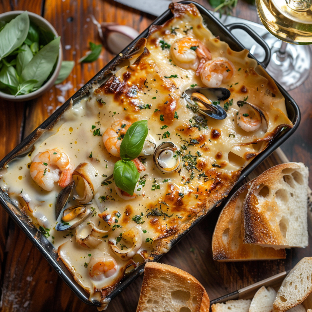 Лазанья с морепродуктами и чесноком