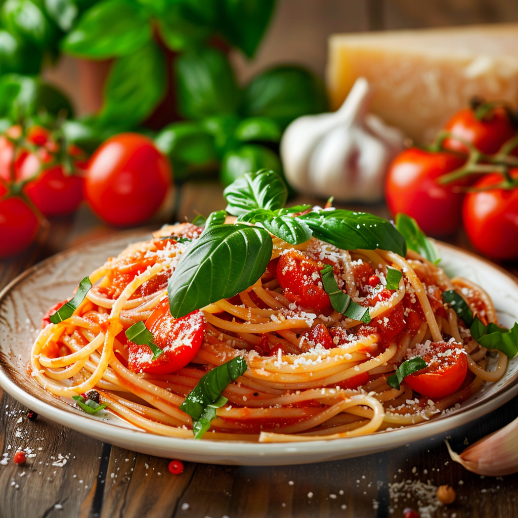 Паста с томатным соусом и базиликом