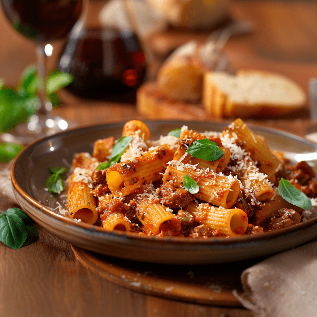 Ригатони с телятиной и помидорами