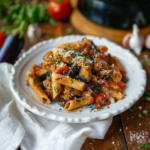 Паста с баклажанами и томатным соусом – это ароматное и сытное блюдо, которое переносит вас в сердце итальянской кухни. Нежные кубики баклажанов обжариваются до золотистой корочки, затем тушатся в насыщенном томатном соусе, приготовленном из спелых помидоров, чеснока и оливкового масла. Добавление свежего базилика и щепотки красного перца придаёт соусу особую пикантность и глубину вкуса. Паста, приготовленная до состояния аль денте, идеально впитывает этот ароматный соус, создавая гармоничное сочетание. Сверху блюдо украшается тертым пармезаном и свежей зеленью, что придает ему завершенность и изысканность. Это идеальный выбор для уютного семейного ужина или обеда с друзьями, когда хочется насладиться чем-то вкусным и полезным.
