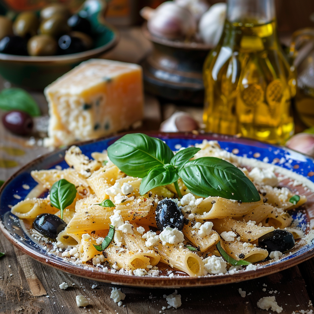 Этот рецепт представляет собой простое и вкусное блюдо, которое можно приготовить быстро и легко. Паста сочетается с ароматной фетой и оливками, создавая богатый вкус.