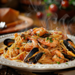 Нежные спагетти, приправленные сочными морепродуктами и ароматным чесноком — это блюдо, которое отлично подойдет для ужина в кругу семьи или для ужина с друзьями.