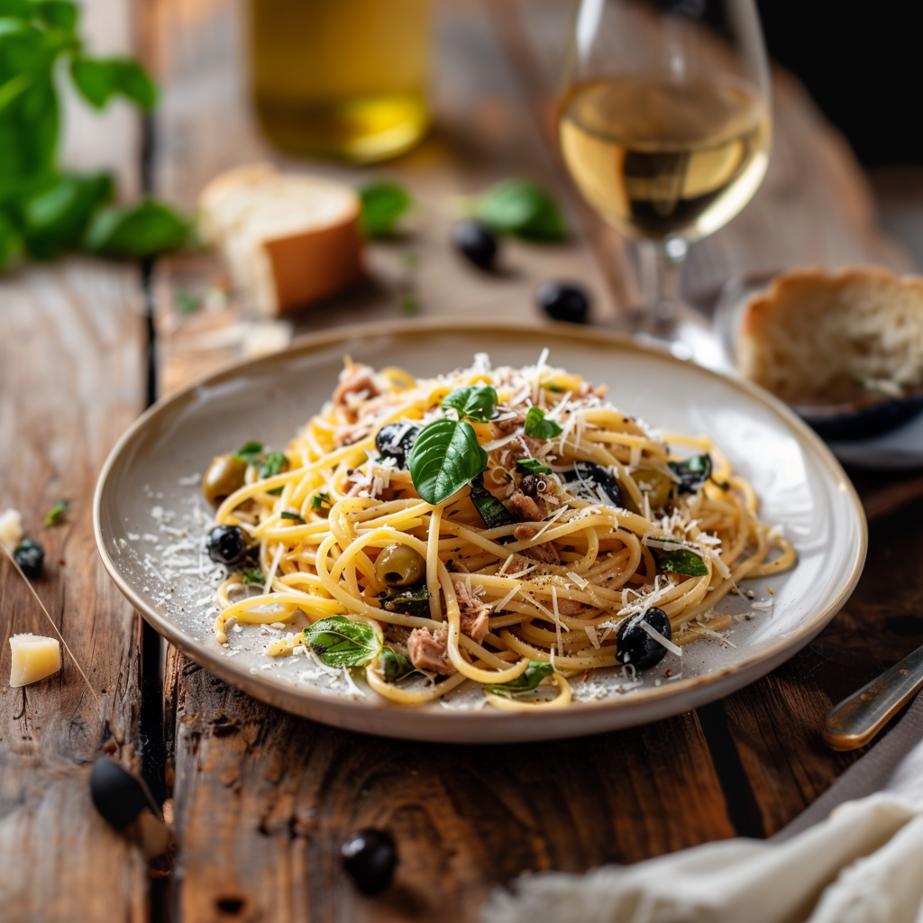 Этот рецепт представляет собой легкое и вкусное блюдо из спагетти с нежным тунцом и ароматными оливками. Прекрасный выбор для тех, кто ценит простоту и изысканный вкус в одном блюде.